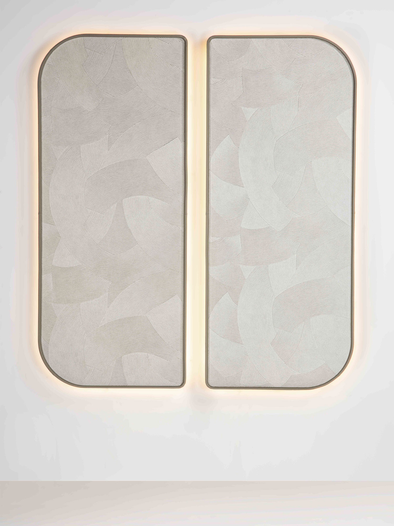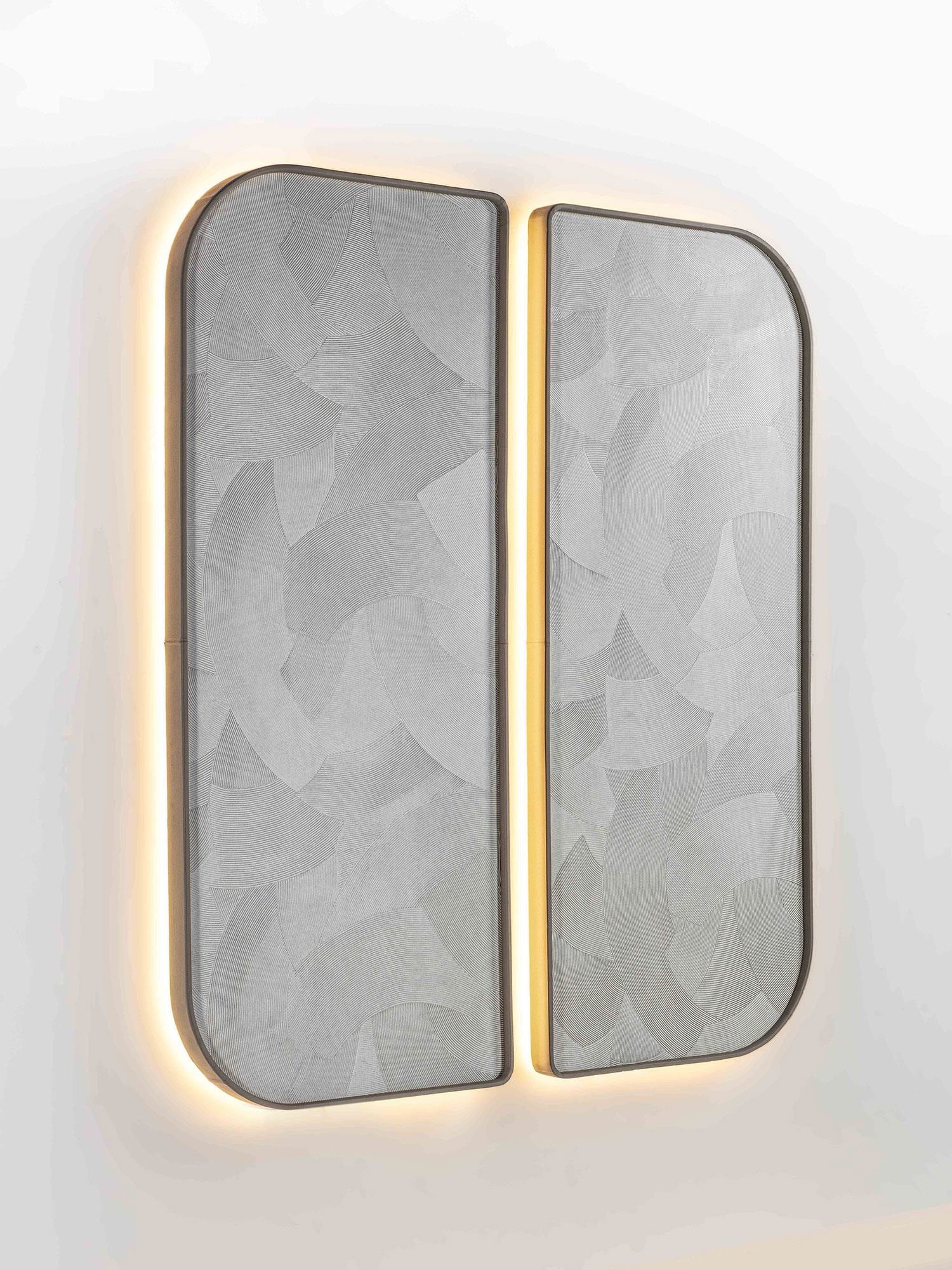 Carrera è una boiserie decorativa che impreziosisce la zona giorno grazie alla carta da parati incorniciata nel pannello di legno con profili in pelle, evidenziando una texture 3D retroilluminata. Si tratta di un dettaglio architettonico che reinterpreta un linguaggio tradizionale in uno stile di vita più contemporaneo. Eleganza, unicità e design sono le parole chiave di questa novità della collezione Vittoria Frigerio.